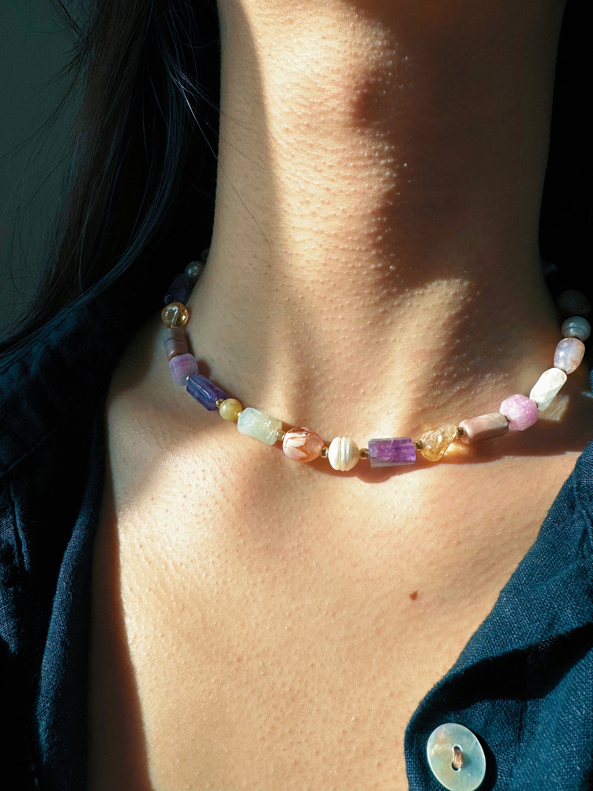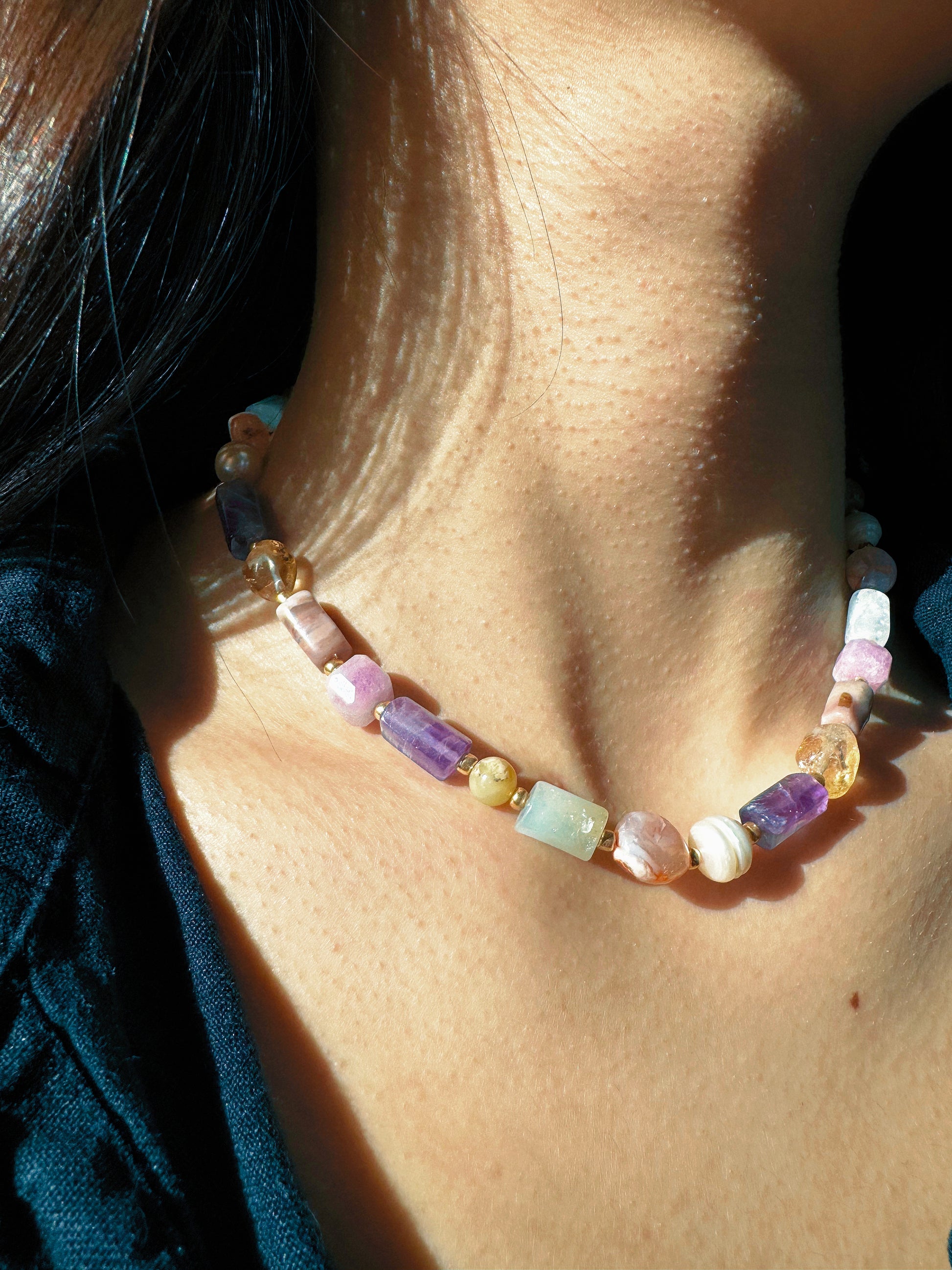 - Orijinal Amestist, Barok İnci, Sitrin, Pembe Kuvars ve Aquamarine doğal taşları kullanılmıştır.